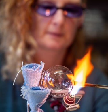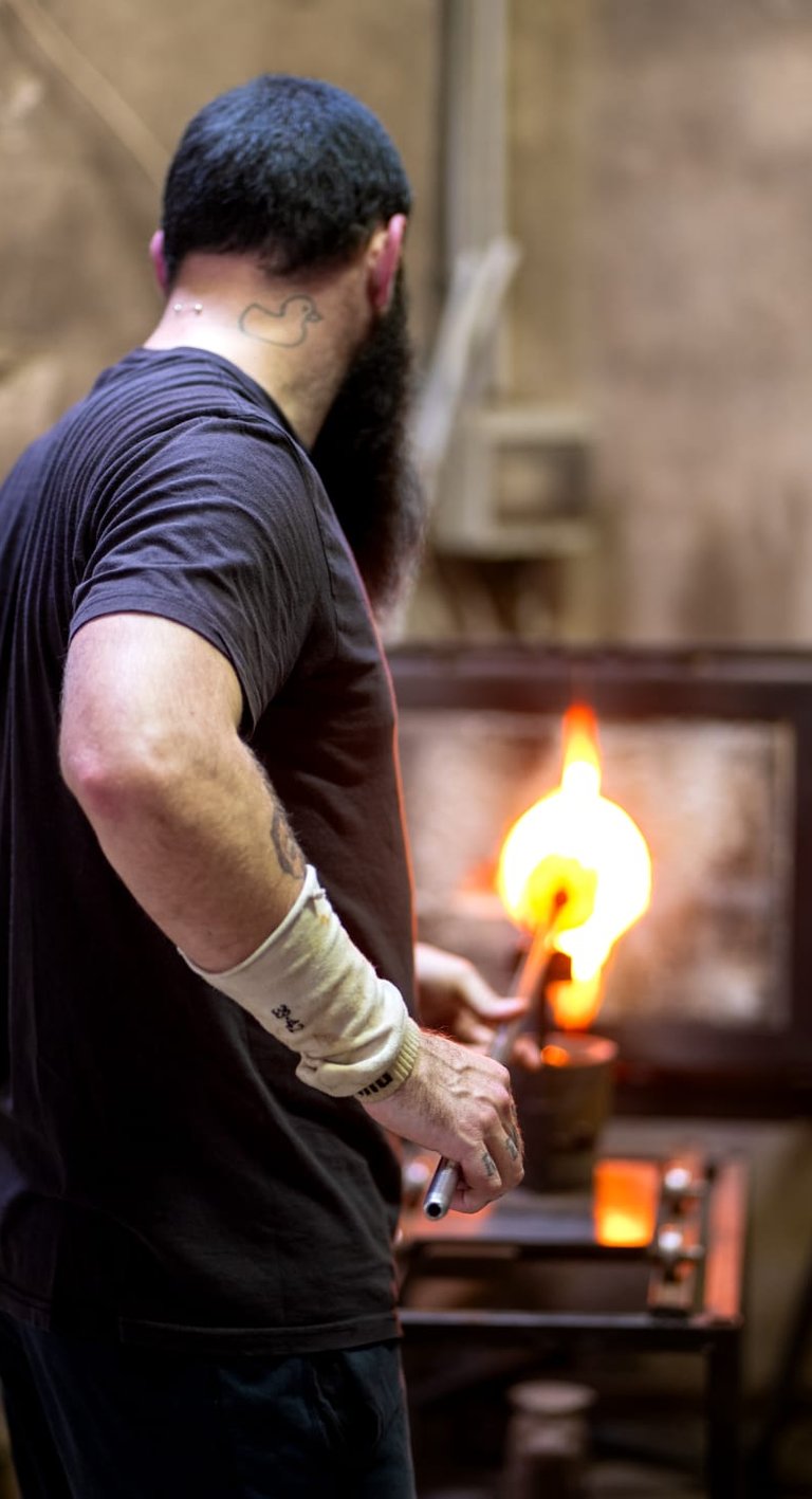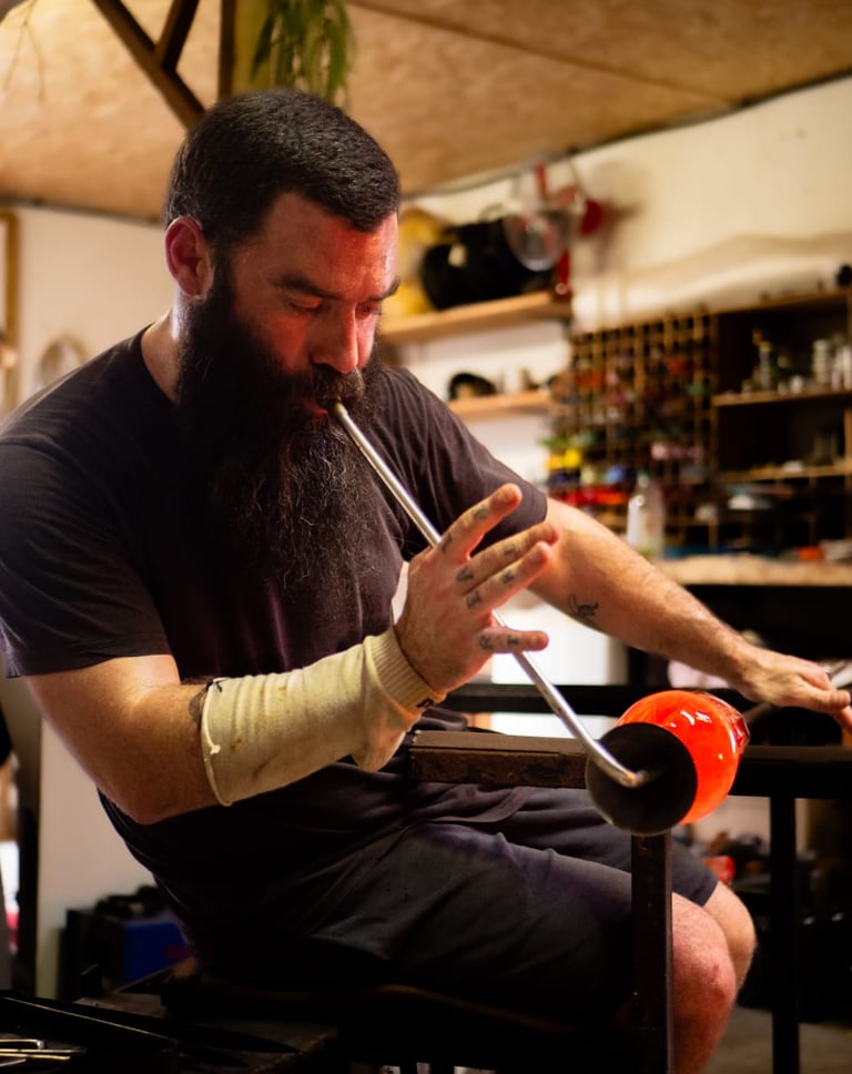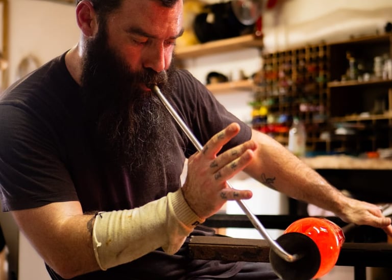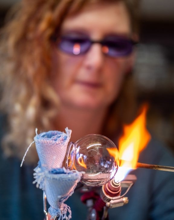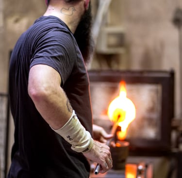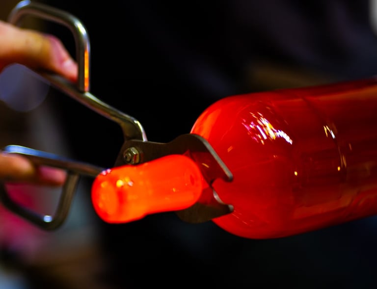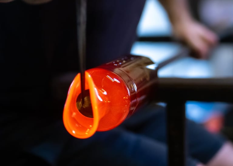 Les flammes transforment le verre, donnant vie à des objets uniques alliant durabilité et industrie locale.