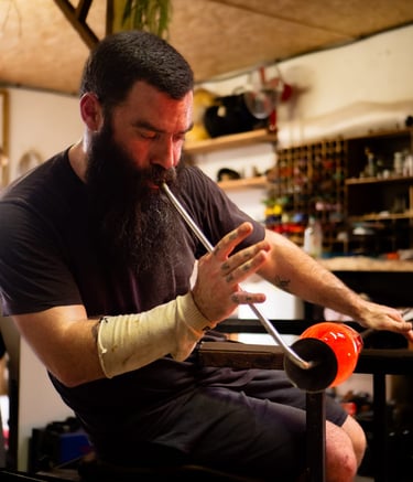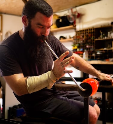 À l'atelier de la souffle, chaque bouteille trouve une nouvelle vie grâce au feu et à la passion du soufflage de verre artisanal.